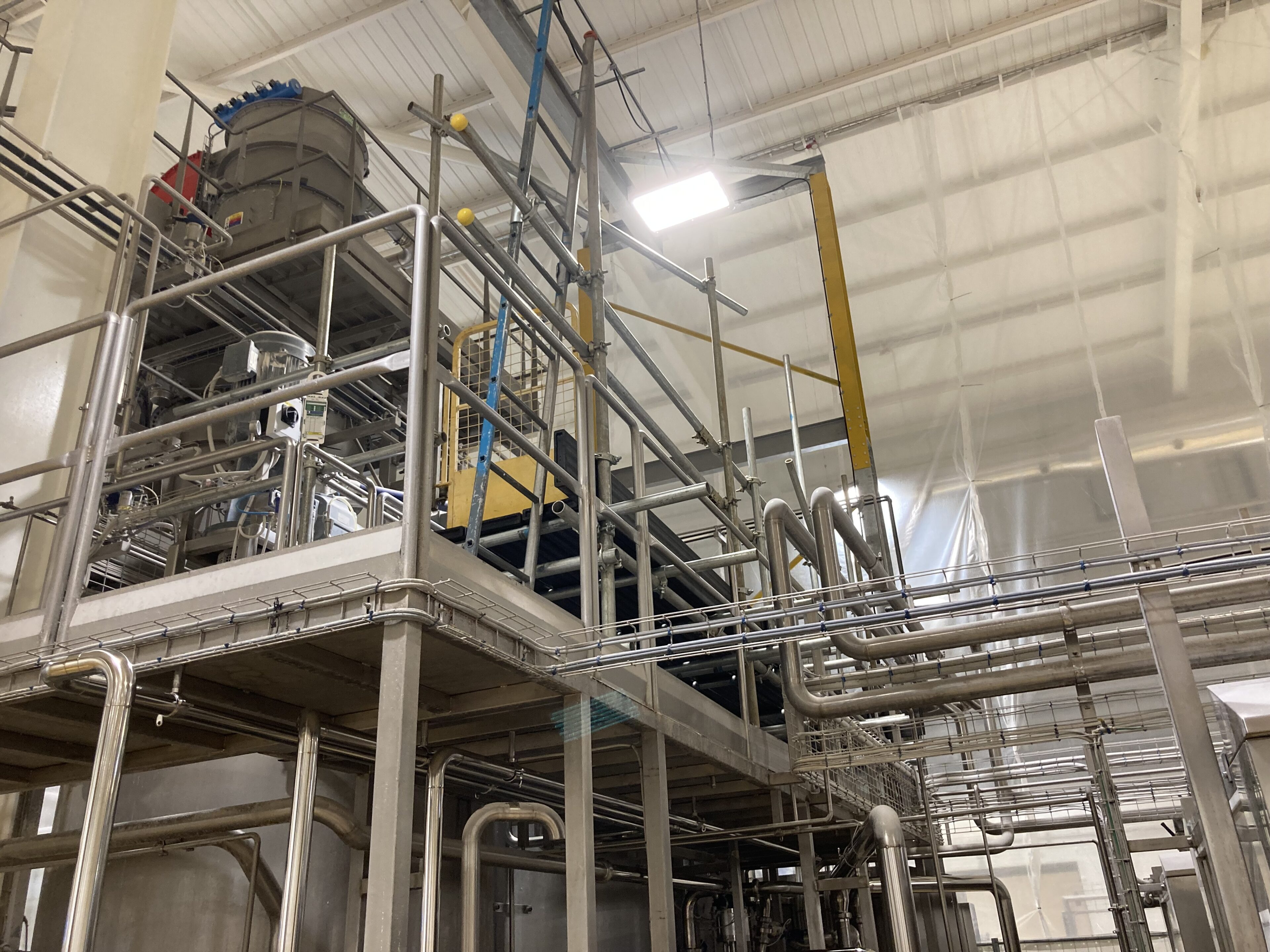 Independent Scaffolding in Lincoln Food production factory. Scaffold Access enabled safe entry into mixing tanks.