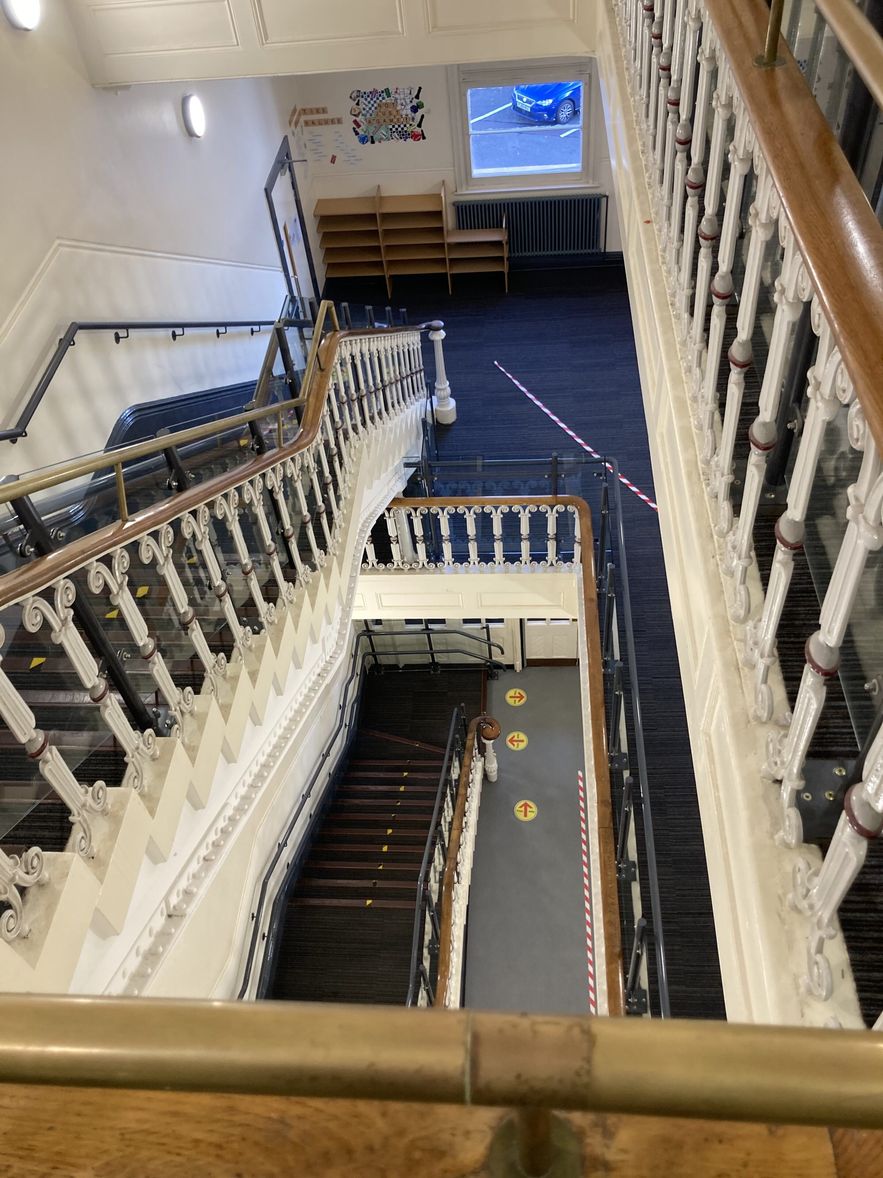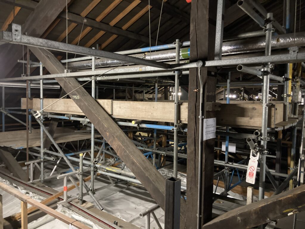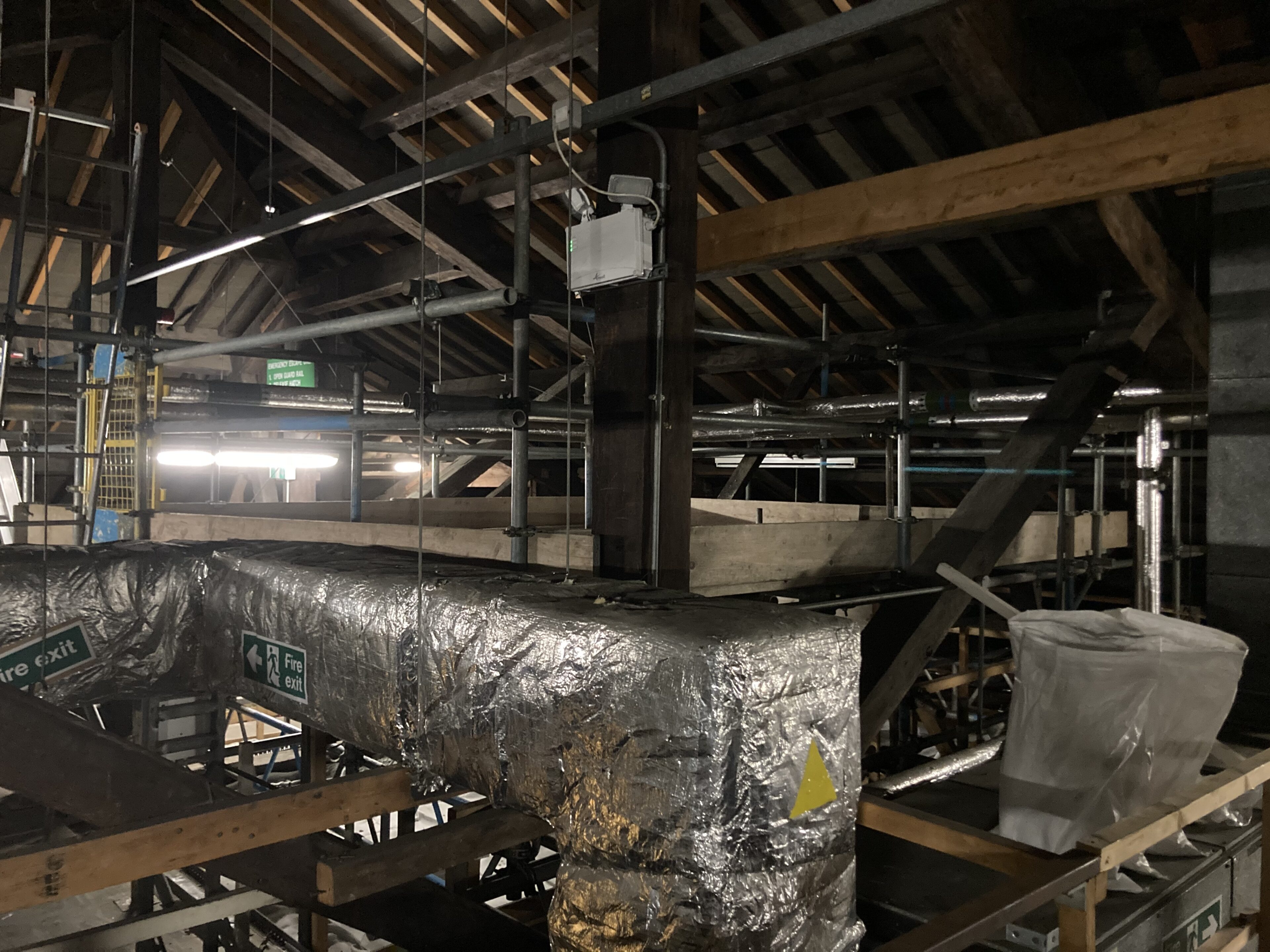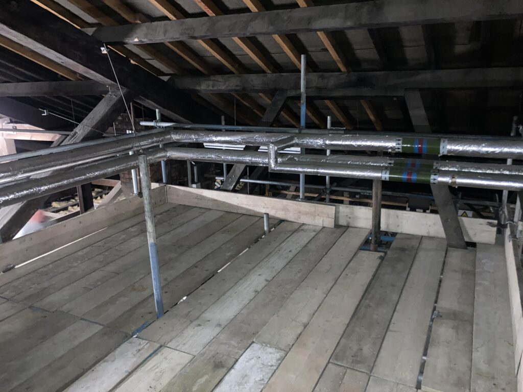This scaffold was Erected above a Glass ceiling in a stairwell at a School in Derbyshire. It enabled repairs to be carried out to the Heating System.